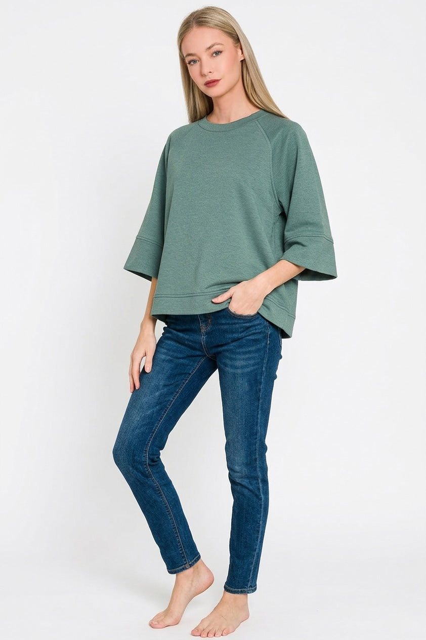 This relaxed-fit sweatshirt features stylish bell sleeves and a comfortable crew neckline. Made from a soft and breathable fabric blend, it offers all-day comfort and is perfect for layering. The versatile design makes it suitable for various occasions, from casual outings to cozy nights in. Easy to care for and available in a range of sizes, this sweatshirt is a must-have addition to any wardrobe. The ash jade color adds a touch of sophistication, making it a fashion and fashionable choice.